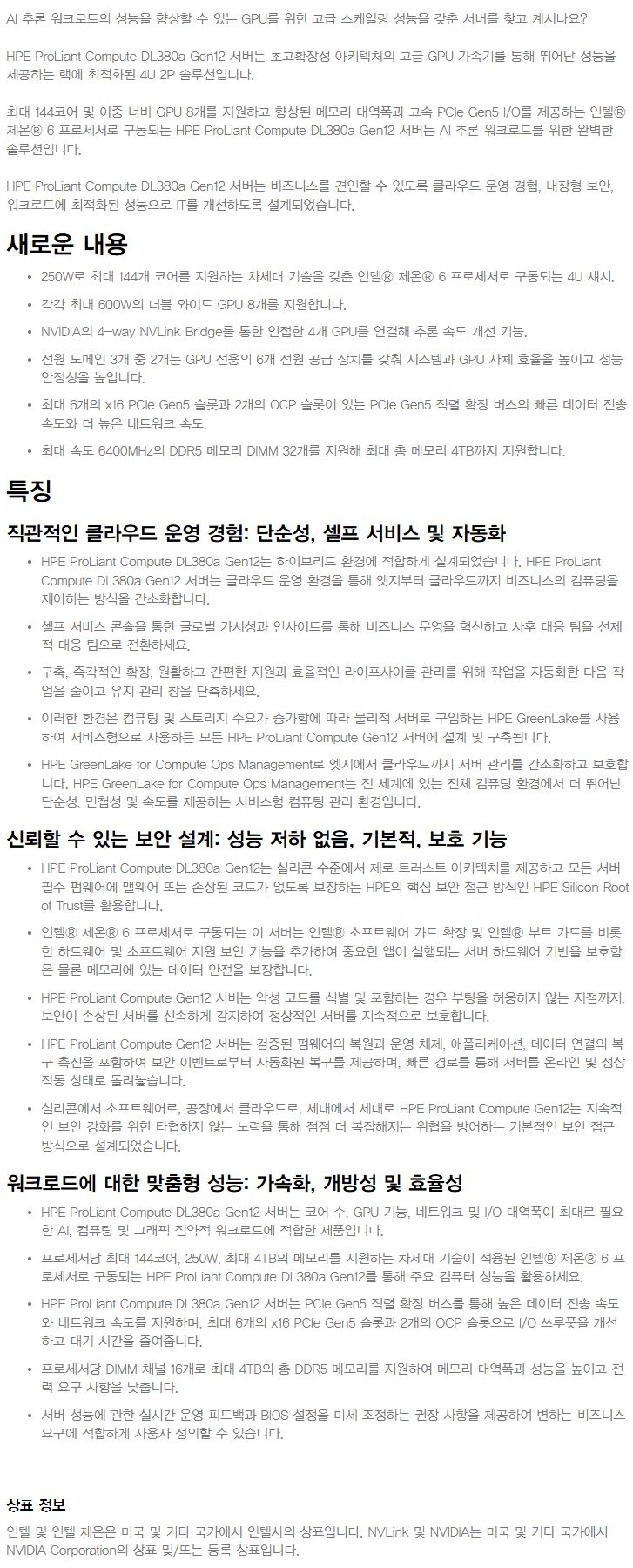 갤러리 카테고리 HPE ProLiant Compute DL380a Gen12 등록일 2025-05-27 아이노리 첨부파일 HPE ProLiant Compute DL380a Gen12데이터 시트-PSN1014846947KRKO.pdf 0회 다운로드 | DATE : 2025-05-27 04:27:22 관련링크 https://psnow.ext.hpe.com/product?id=1014846947 19회 연결 HPE ProLiant Compute DL380a Gen12 GPU 8개 지원 전용 서버 이전글 HPE ProLiant Compute DL384 Gen12 다음글 HPE ProLiant DL380 Gen12 목록