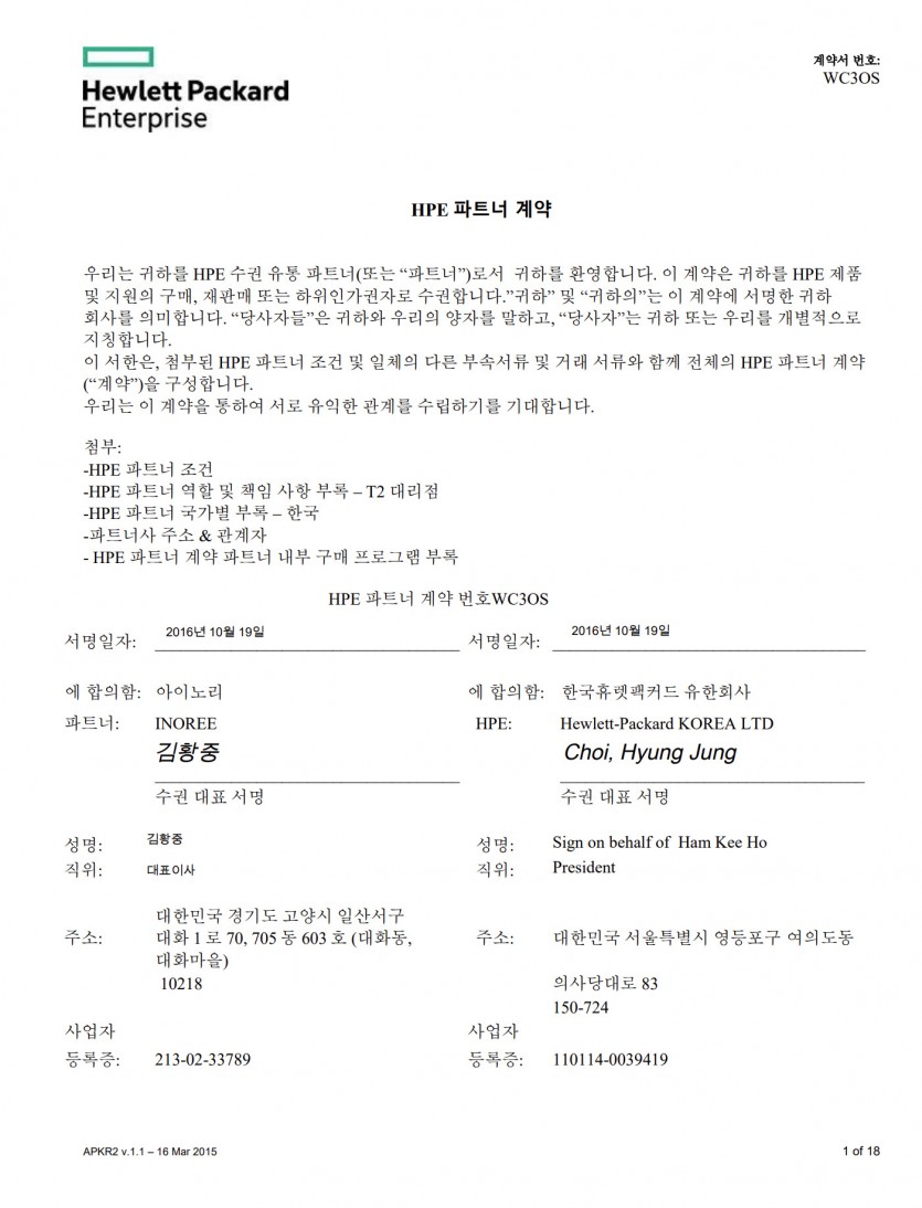 2016년 10월 19일자로 아이노리가 HPE Business Partner로
